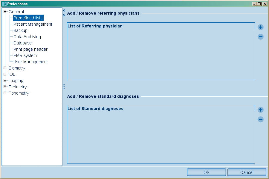 You can enter in the list of referring doctors the addresses of the partners who refer patients to you. This information can be assigned to the patient under Examination Data.