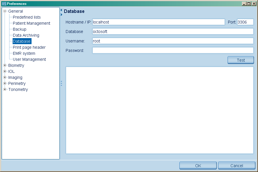 Password: Password to be entered by the user authorised to access the EyeSuite database kept on the server.